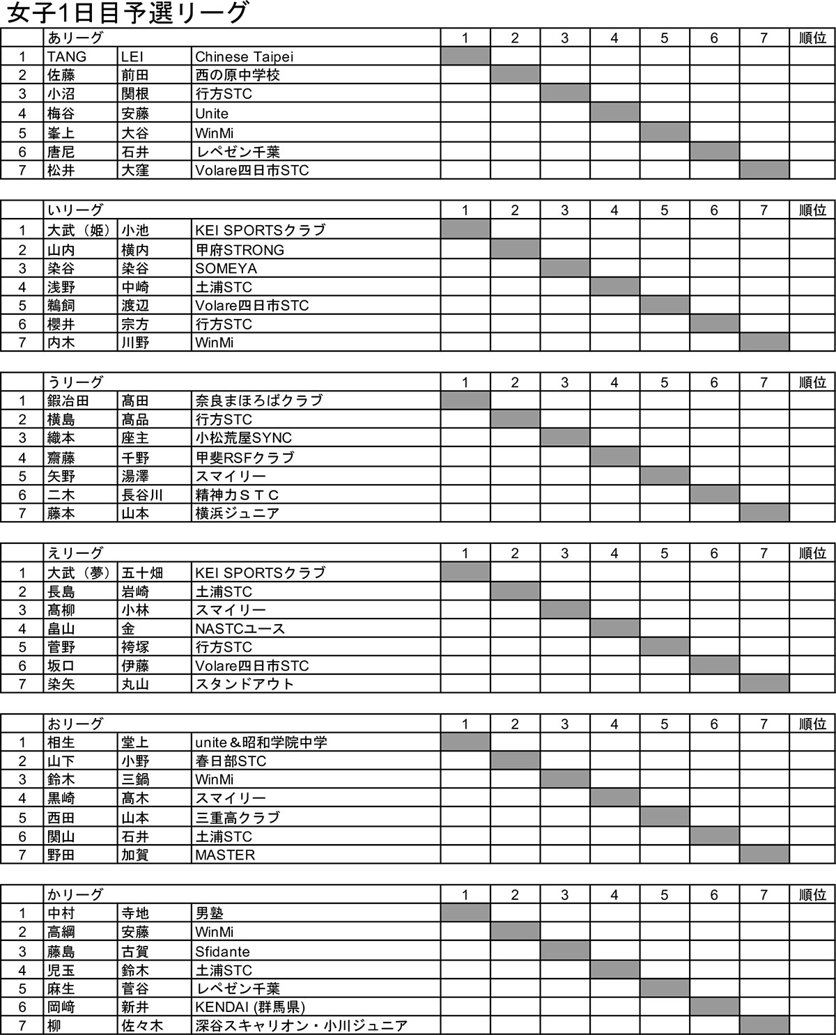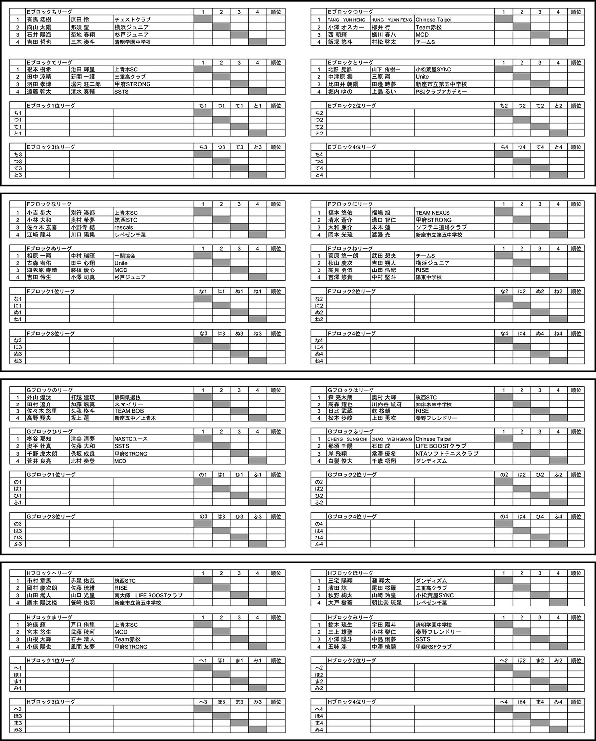 - 予選リーグ組み合わせ公開